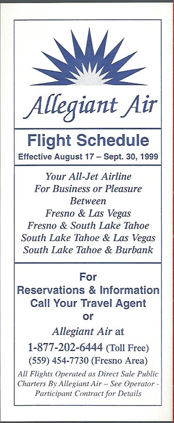 Allegiant Air System Timetable 8 17 99 0123 Buy 4 Save 50 Ebay